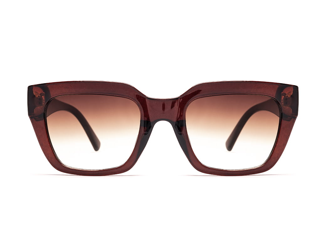 Duże okulary przeciwsłoneczne w kolorze brązowym.Eleganckie zdobienie na zauszniku.