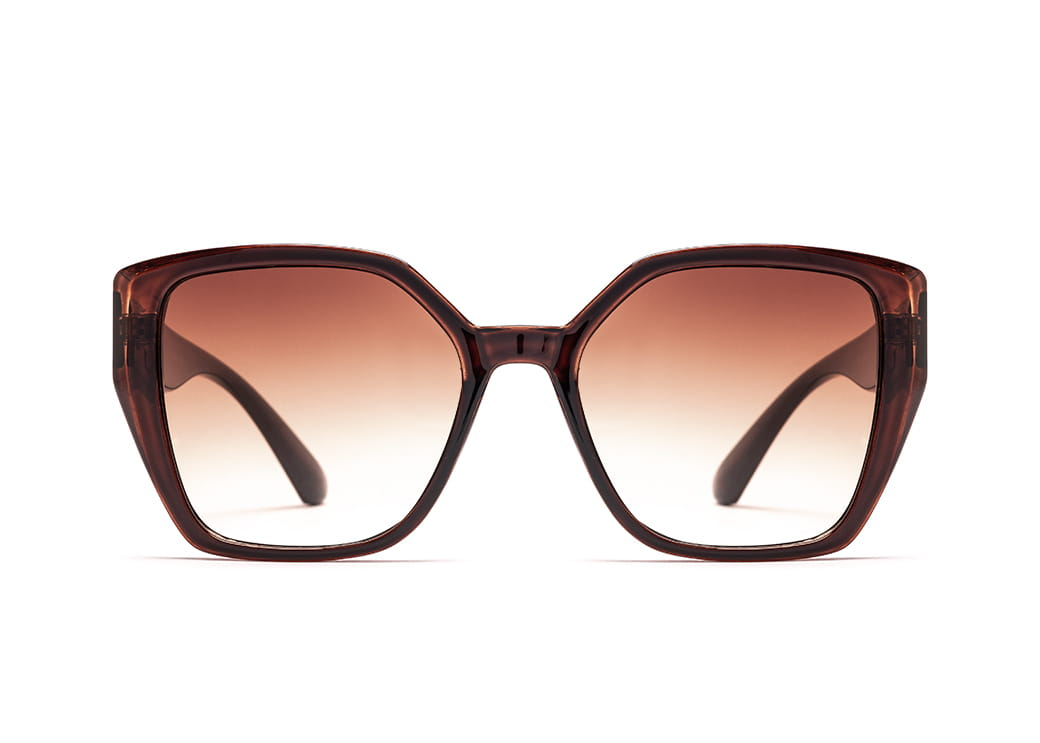 Geometryczne okulary przeciwsłoneczne w kolorze brązowym.Gustowne zdobienie na zauszniku.