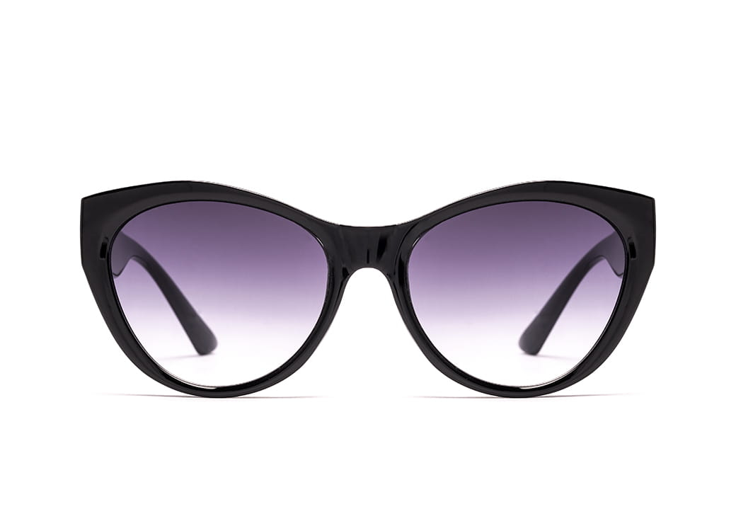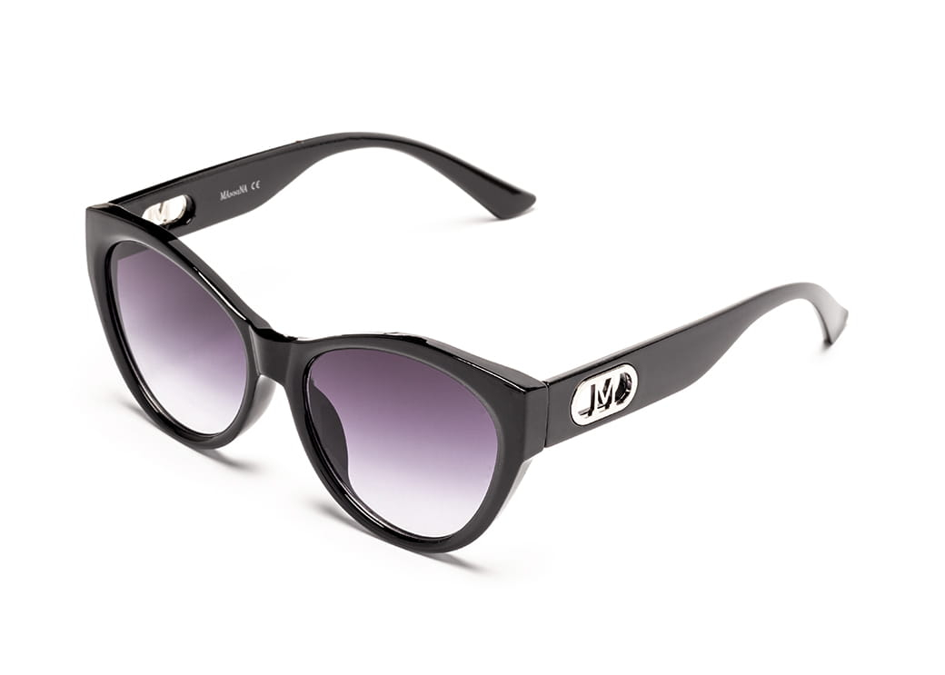 Okulary przeciwsłoneczne w kolorze czarnym o kształcie "kocie oko".Eleganckie zdobienie na zauszniku.
