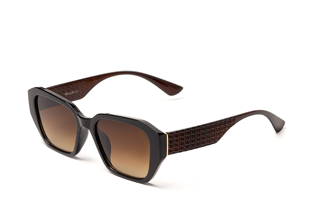 Okulary przeciwsłoneczne w kolorze brązowym o kształcie geometrycznym.Delikatny element ozdobny za zauszniku.