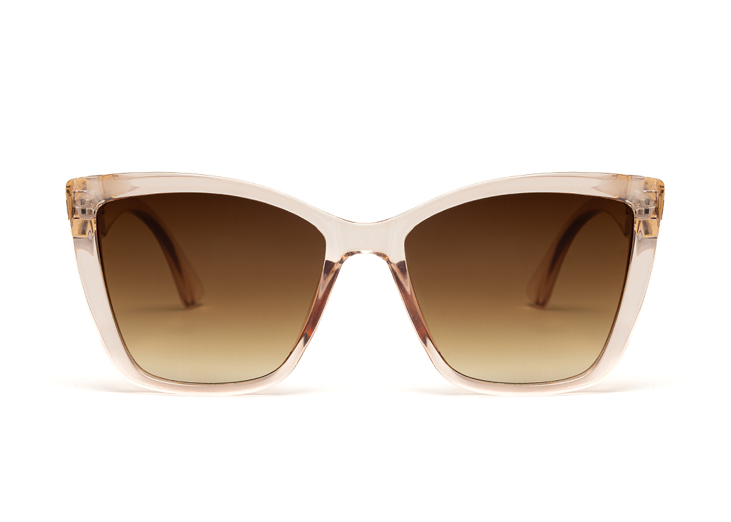 Klasyczne okulary przeciwsłoneczne w kolorze beżowym.Lekkie metalowe zdobienie na zauszniku.