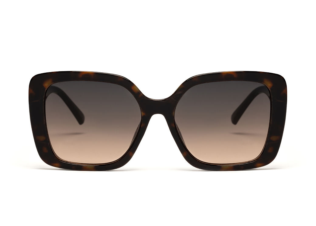 Klasyczne duże okulary przeciwsłoneczne w kolorze brąz panterka z zausznikiem w kolorze czarnym.