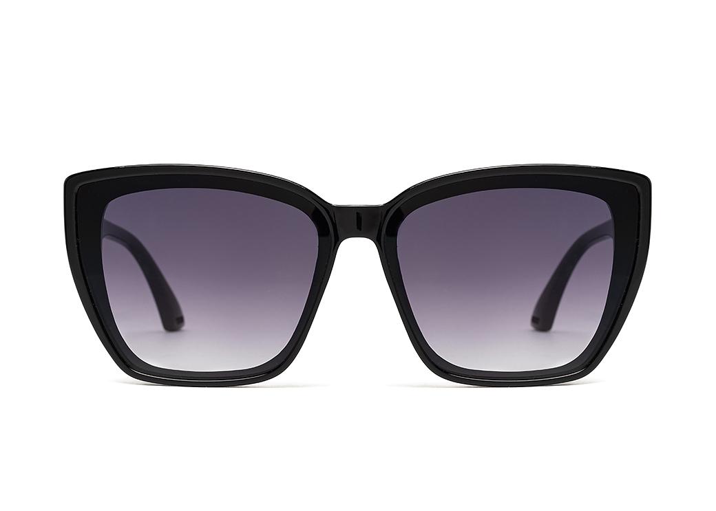 Klasyczne,duże okulary przeciwsłoneczne w kolorze czarnym.Gustowne metalowe zdobienie na zauszniku.