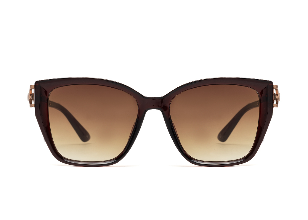 Klasyczne okulary przeciwsłoneczne w kolorze brązowym.Delikatny metalowy zausznik.