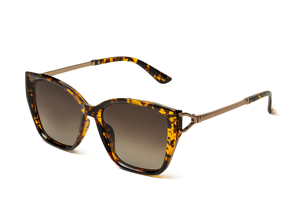 Klasyczne okulary przeciwsłoneczne w kolorze panterka brąz.Delikatny metalowy zausznik.
