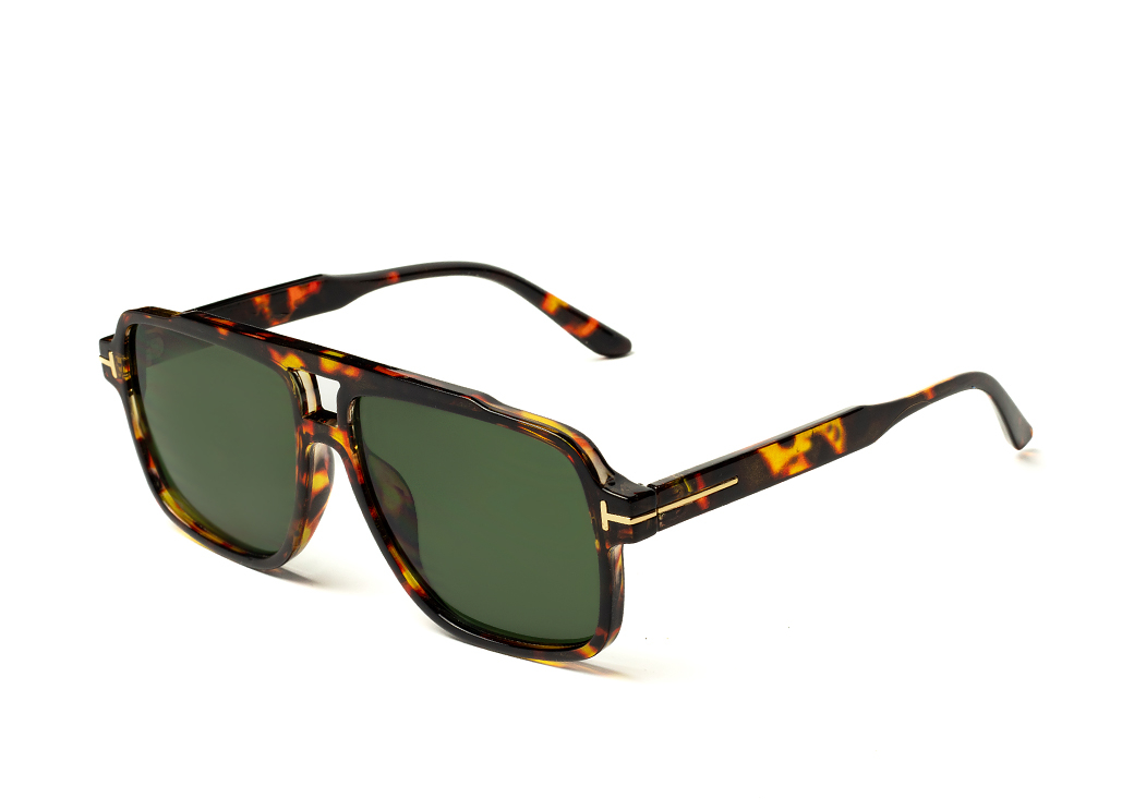 Okulary pilotki w kolorze brąz panterka z zieloną soczewką.Element dekoracyjny na zauszniku.