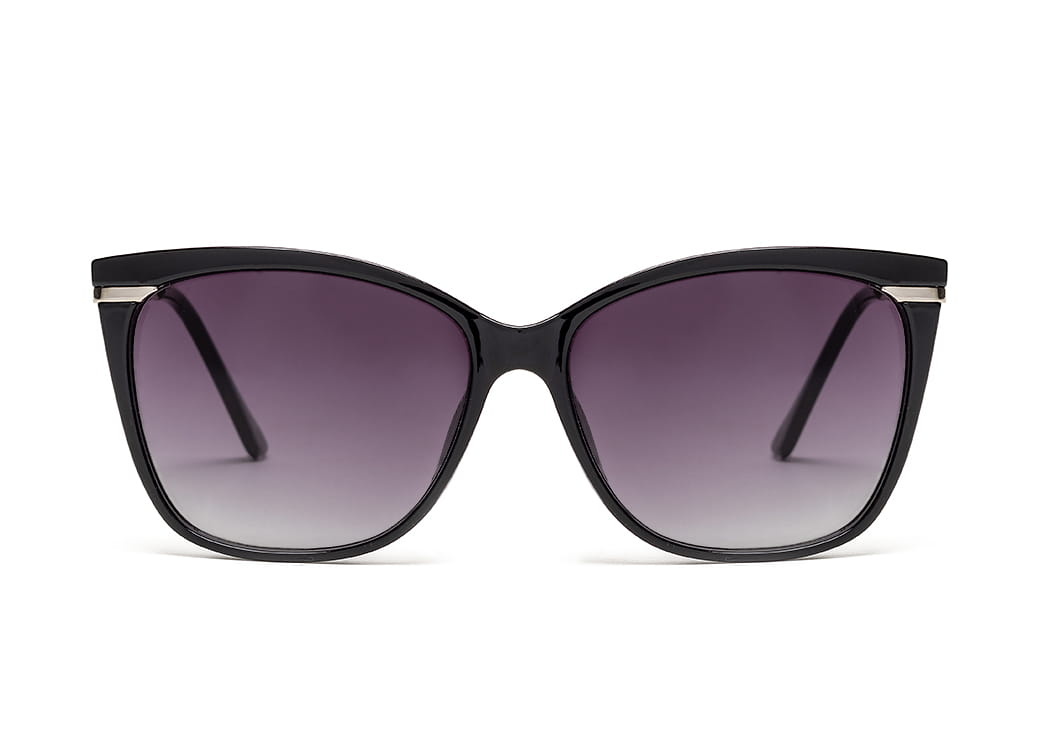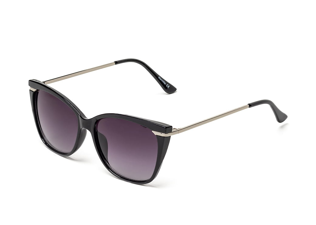 Okulary przeciwsłoneczne o kształcie "kocie oko" w kolorze czarnym.Delikatny,metalowy zausznik.
