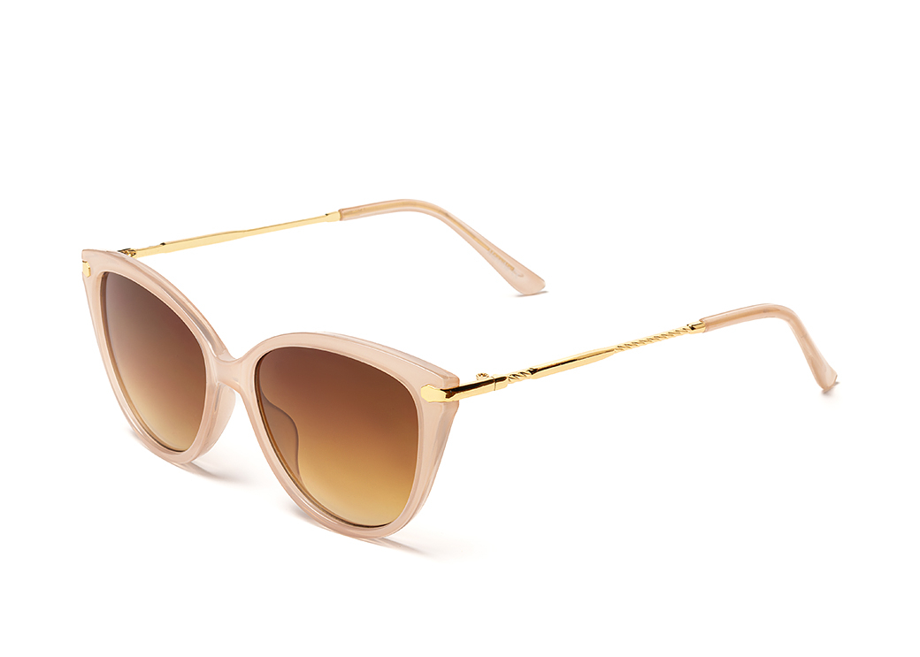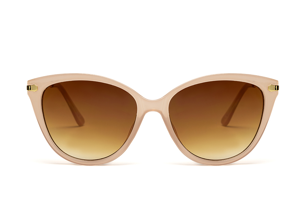 Okulary przeciwsłoneczne w kolorze jasny róż o kształcie "kocie oko".Delikatny metalowy zausznik
