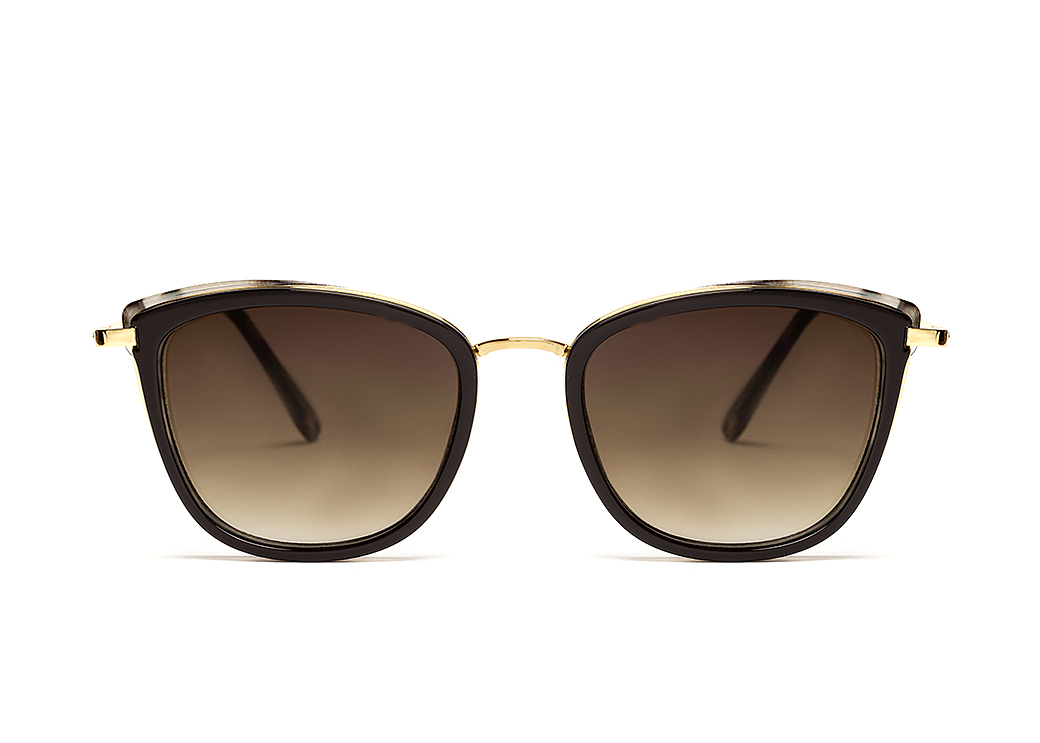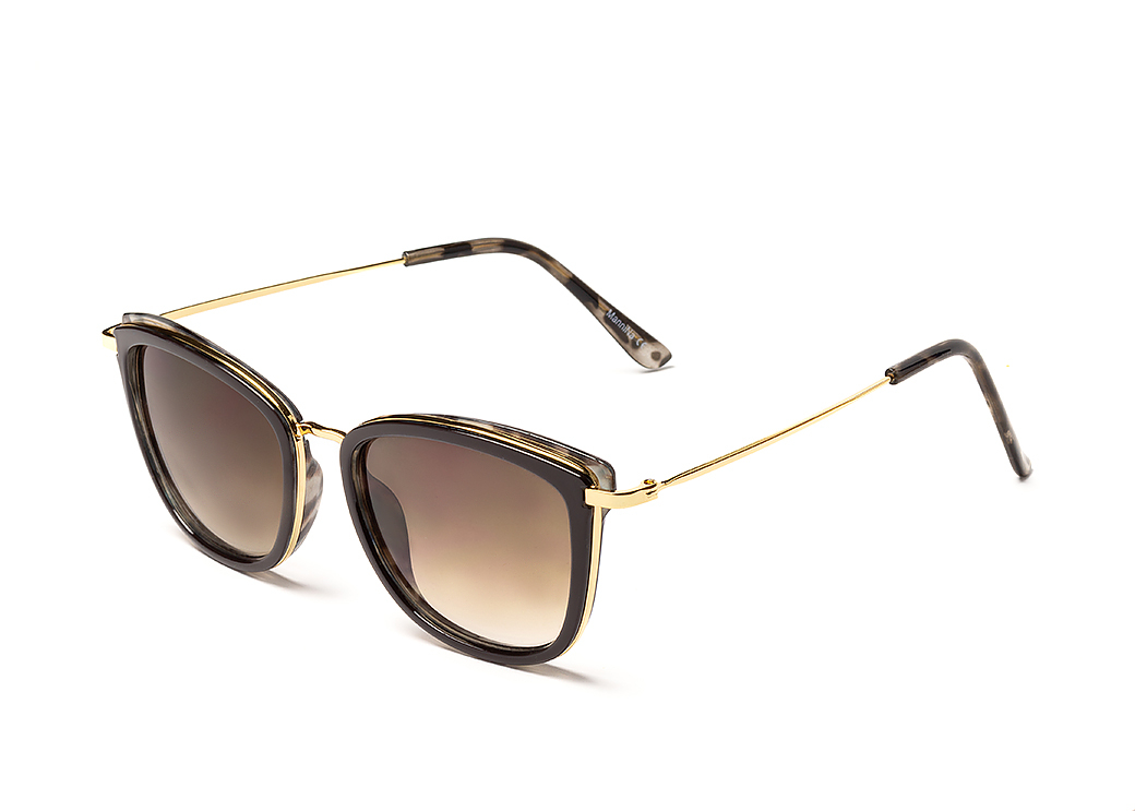 Klasyczne okulary przeciwsłoneczne w kolorze brązowym.Delikatne metalowe zauszniki w kolorze złotym.