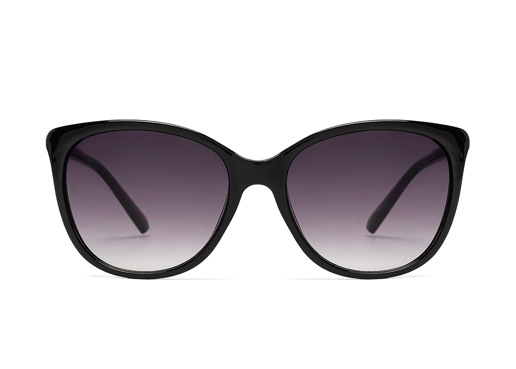 Okulary przeciwsłoneczne o kształcie "kocie oko" w kolorze czarnym.Mały element dekoracyjny na zauszniku.