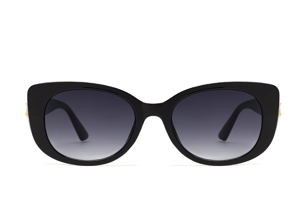 Okulary przeciwsłoneczne o kształcie "kocie oko" w kolorze czarnym.Eleganckie zdobienie na zauszniku.