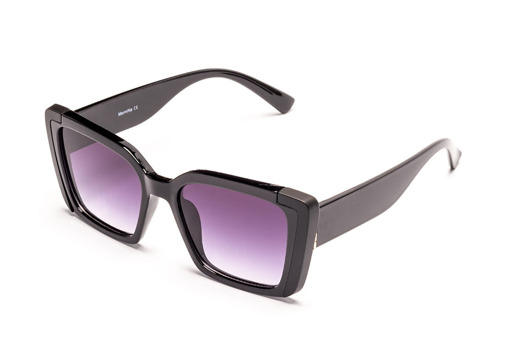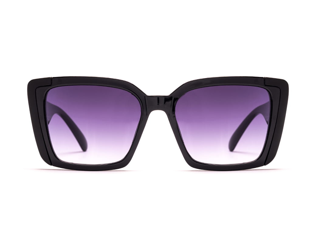 Klasyczne okulary przeciwsłoneczne w kolorze czarnym, matowe zdobienie na froncie oprawki.