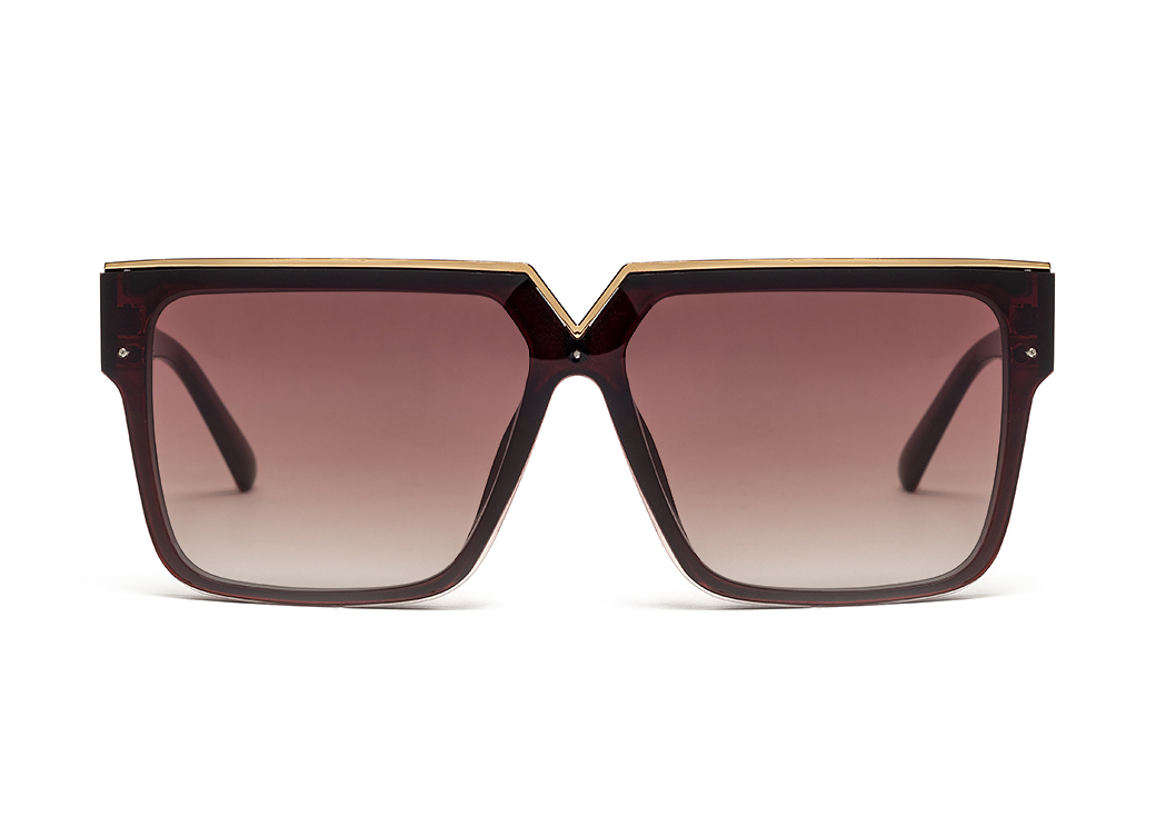 Okulary przeciwsłoneczne typu "Maska" w kolorze brązowym.Delikatne zdobienie na górze oprawki.