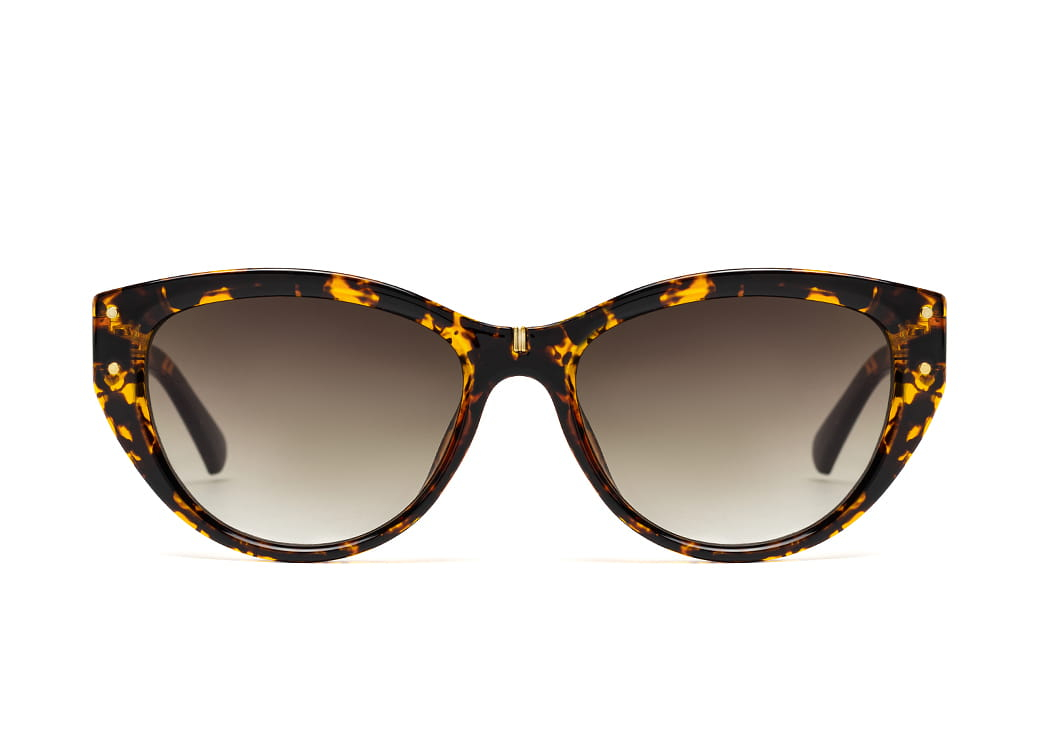 Klasyczne okulary przeciwsłoneczne w kolorze brąz panterka z polaryzacją.Gustowne metalowe zdobienie na zauszniku.