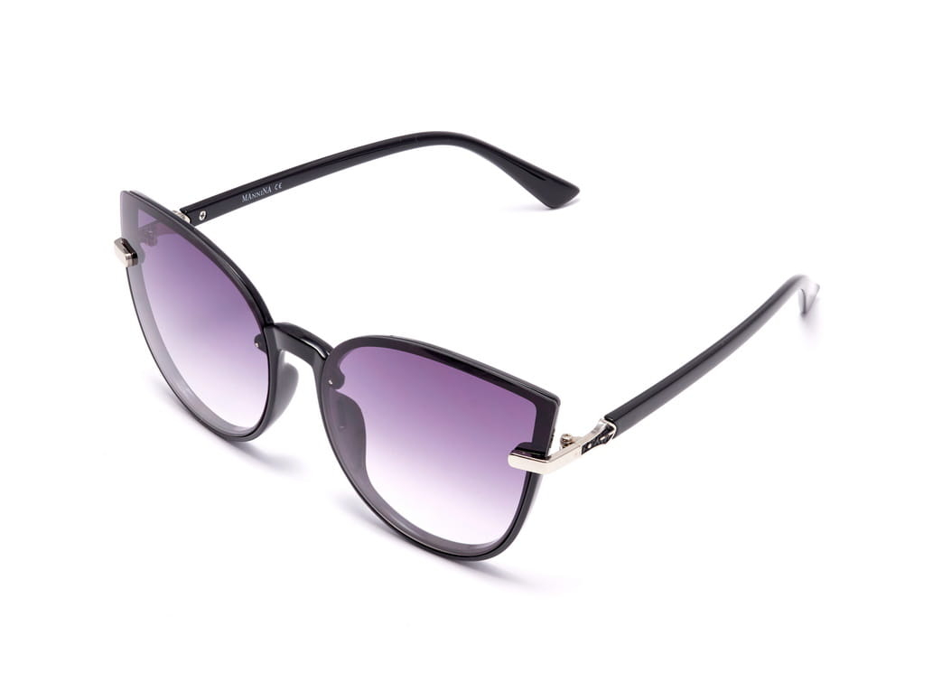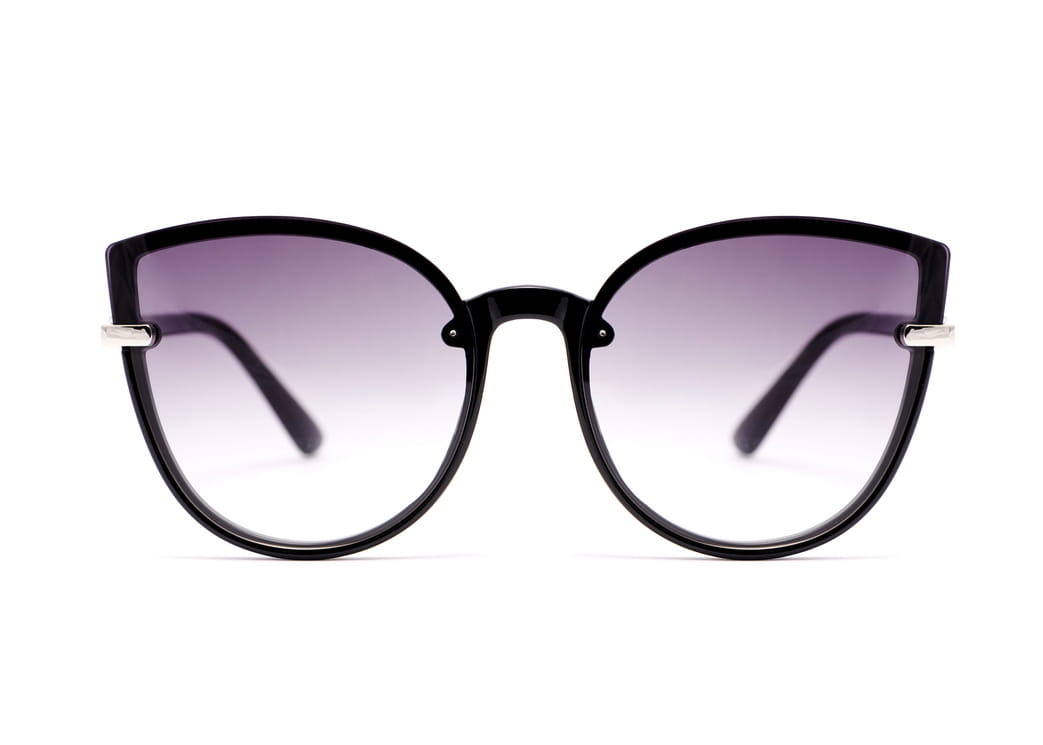 Delikatne okulary przeciwsłoneczne z polaryzacją o kształcie "kocie oko" w kolorze czarnym.Lekkie zdobienie na zauszniku.