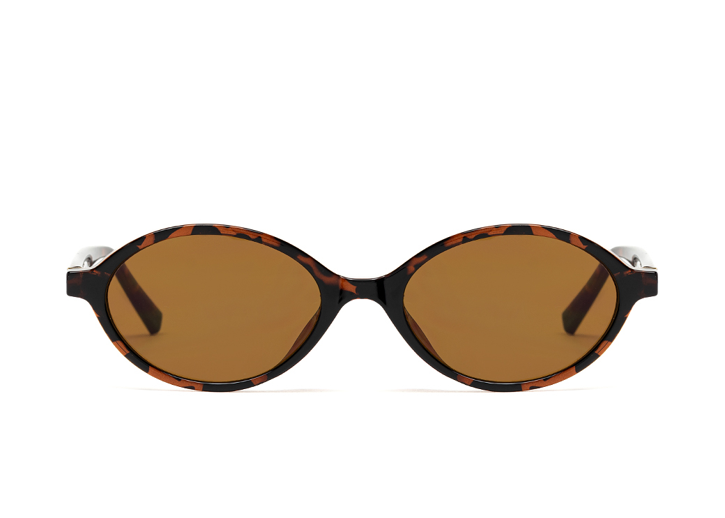 Małe okulary przeciwsłoneczne o modnym kształcie "jajeczko" w kolorze brąz panterka, soczewka brązowa.Wykonane z lekkiego i elastycznego materiału TR90.