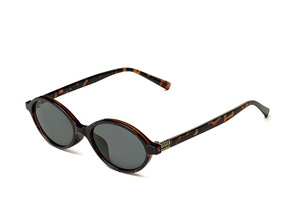 Małe okulary przeciwsłoneczne o modnym kształcie "jajeczko" w kolorze brąz panterka, soczewka ciemnoszara.Wykonane z lekkiego i elastycznego materiału TR90.