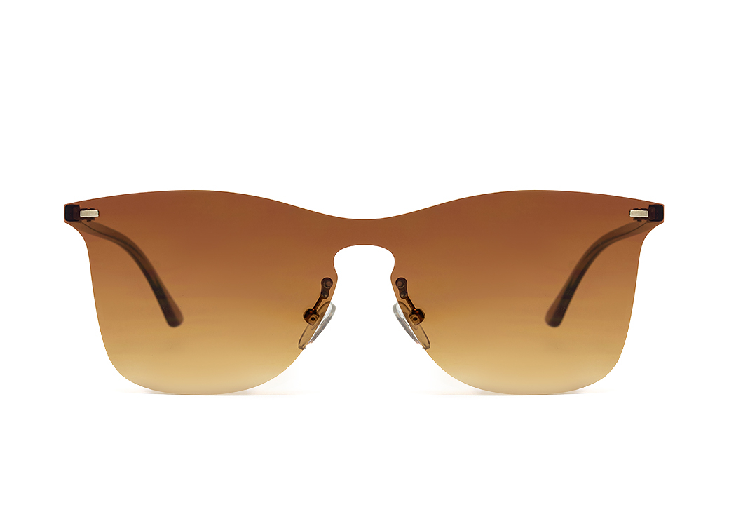 Okulary przeciwsłoneczne typu maska w kolorze brązowym.