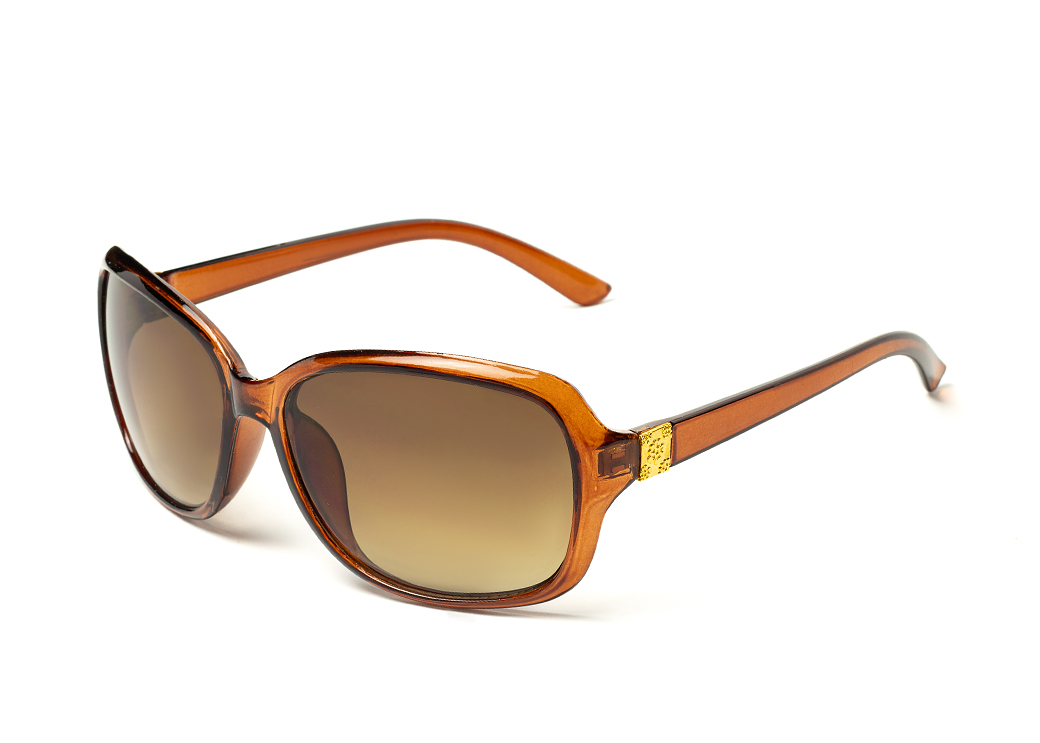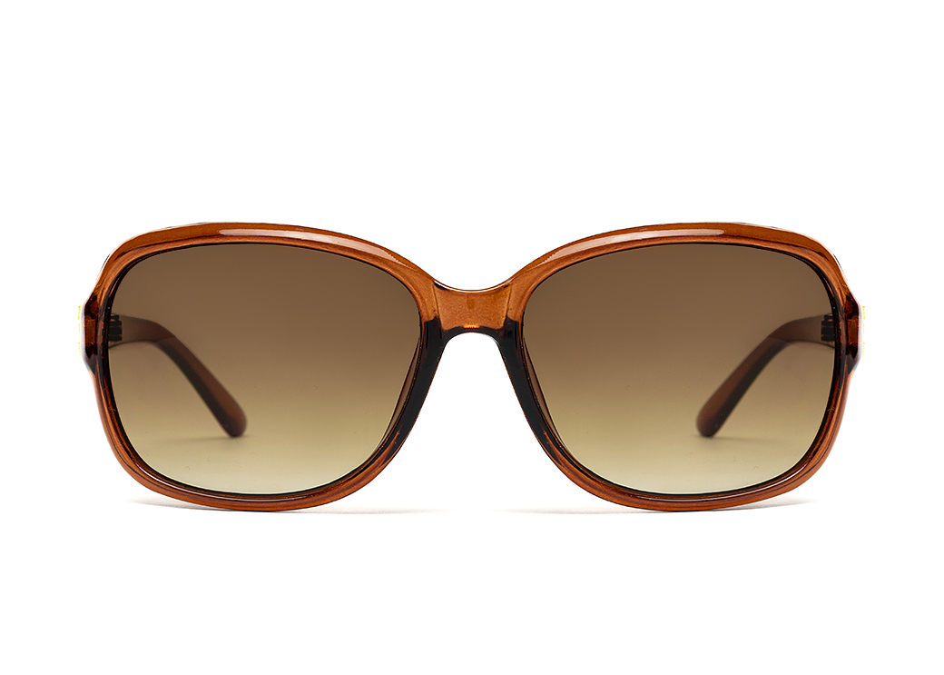 Małe,owalne okulary przeciwsłoneczne w kolorze brązowym.Delikatne zdobienie na zauszniku.