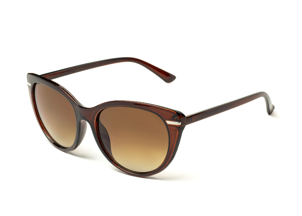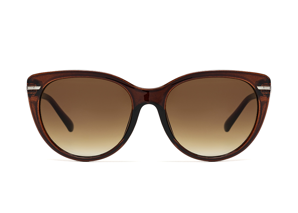 Okulary przeciwsłoneczne o kształcie "kocie oko" w kolorze brązowym.Delikatne zdobienie na froncie oprawki.