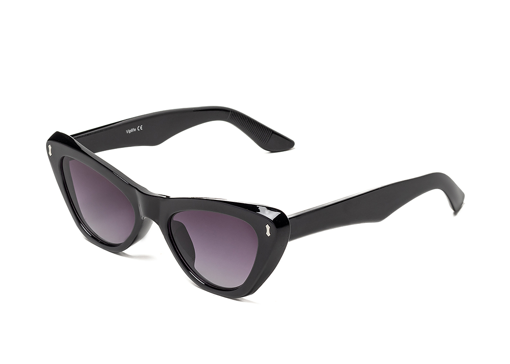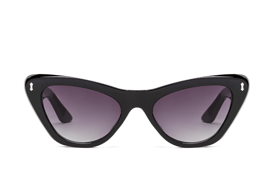 Okulary przeciwsłoneczne o kształcie "kocie oko" w kolorze czarnym.Lekkie zdobienie na froncie oprawki.