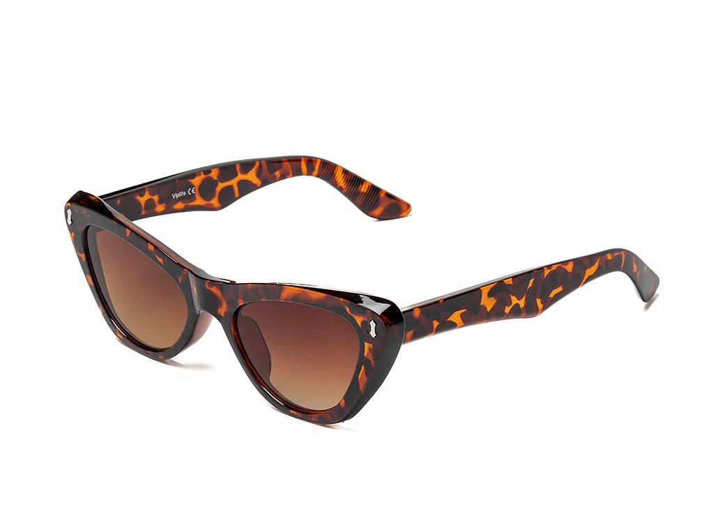 Okulary przeciwsłoneczne o kształcie "kocie oko" w kolorze brąz panterka.Lekkie zdobienie na froncie oprawki.