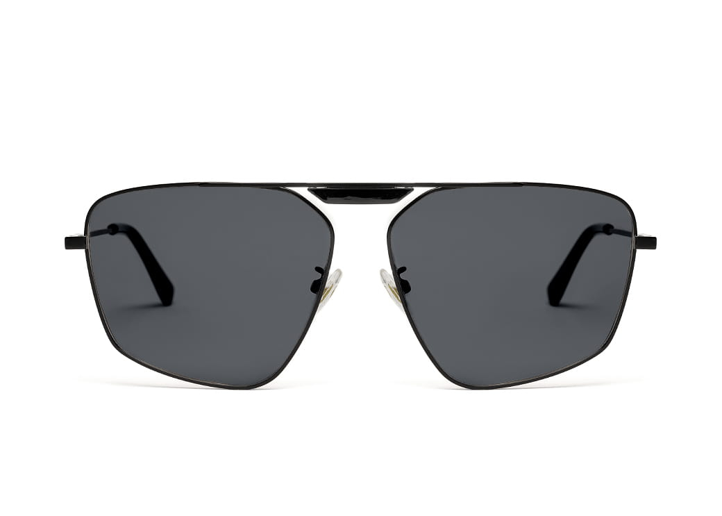 Delikatne metalowe okulary przeciwsłoneczne o kształcie aviator,soczewka w kolorze czarnym.