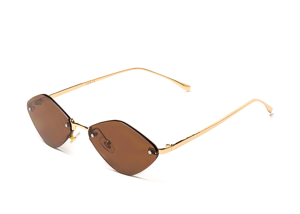 Lekkie okulary przeciwsłoneczne o geometrycznym kształcie z brązową soczewką i metalowymi zausznikami.