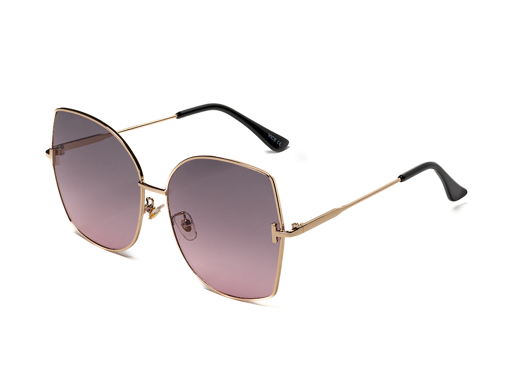 Delikatne,metalowe okulary przeciwsłoneczne, soczewka amarantowa.