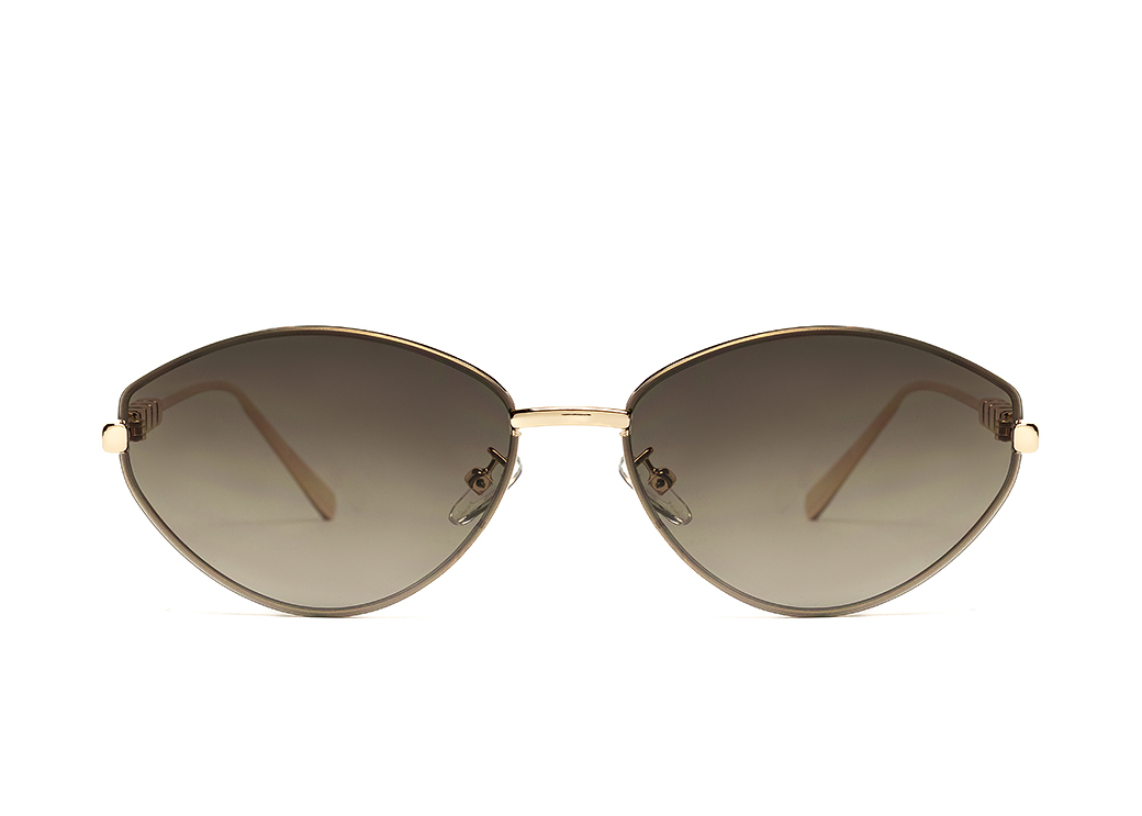 Okulary przeciwsłoneczne o owalnym kształcie, brązowa soczewka soczewka, oryginalne metalowe zauszniki.