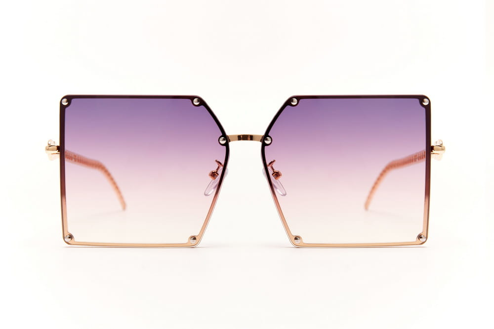 Duże,kwadratowe okulary przeciwsłoneczne, soczewka amarantowa.Elegancki,metalowy zausznik.