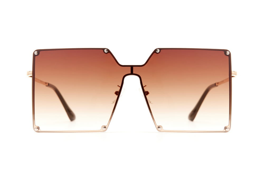 Duże,kwadratowe okulary przeciwsłoneczne, soczewka brązowa.Delikatny,metalowy zausznik.
