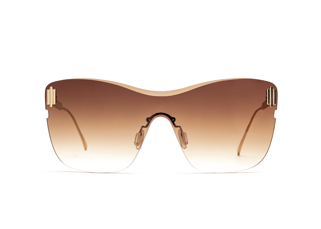 Oryginalne,bezramkowe okulary przeciwsłoneczne o kształcie "maska",soczewka brązowa.