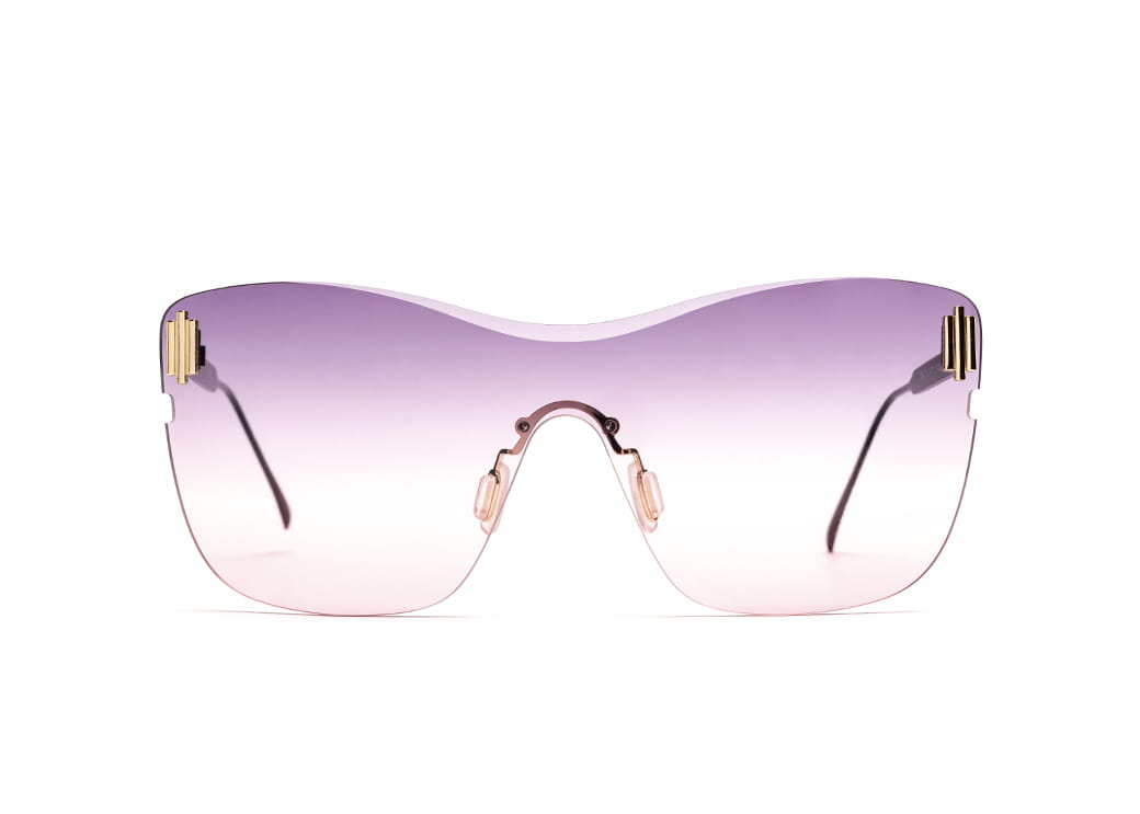 Oryginalne,bezramkowe okulary przeciwsłoneczne o kształcie "maska",soczewka amarantowa.