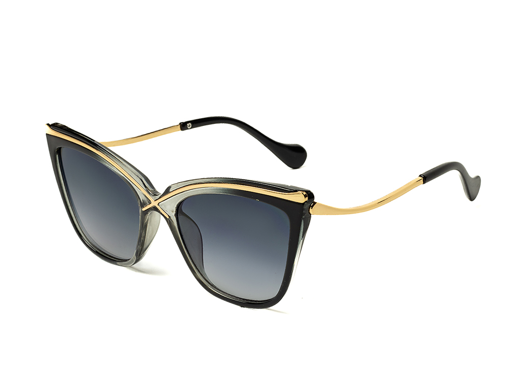 Okulary przeciwsłoneczne o kszałcie "kocie oko" w kolorze czarnym.Metalowe zdobienie na froncie oprawki.