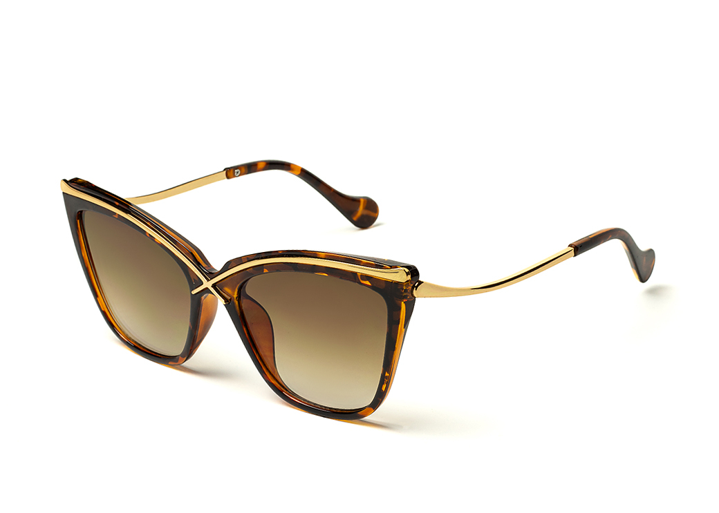Okulary przeciwsłoneczne o kszałcie "kocie oko" w kolorze brąz panterka.Metalowe zdobienie na froncie oprawki.