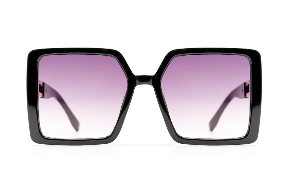Duże,kwadratowe okulary przeciwsłoneczne w kolorze czarnym.Elegancki metalowy zausznik.