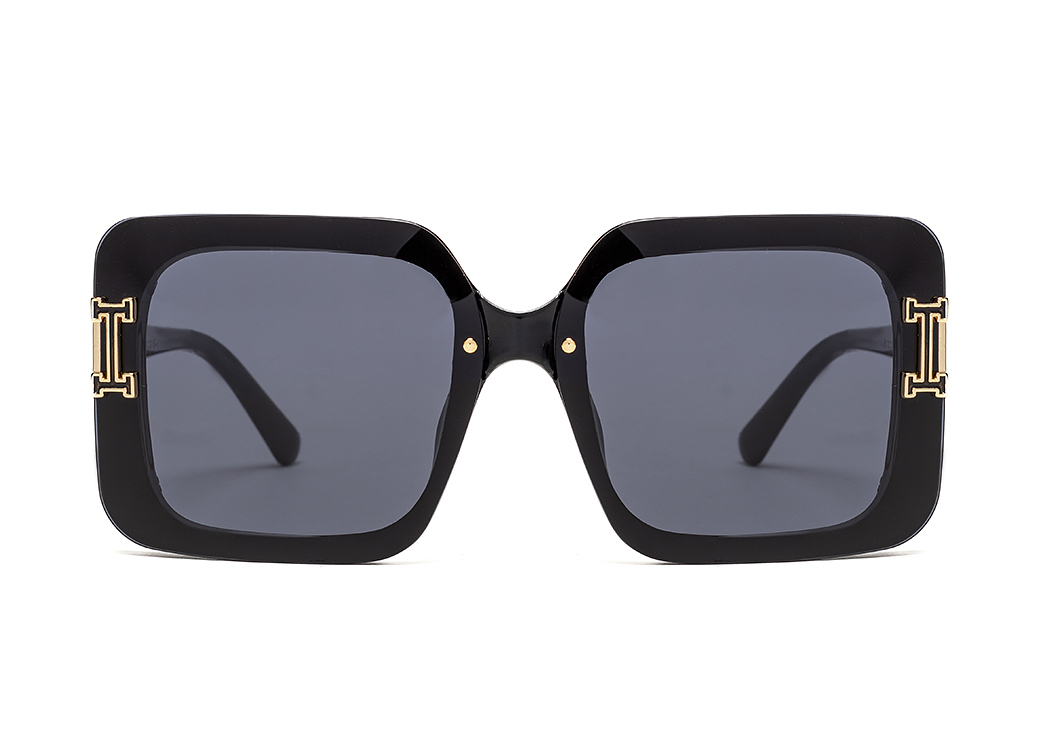 Duże okulary przeciwsłoneczne w kolorze czarnym.Eleganckie zdobienie na froncie oprawki.