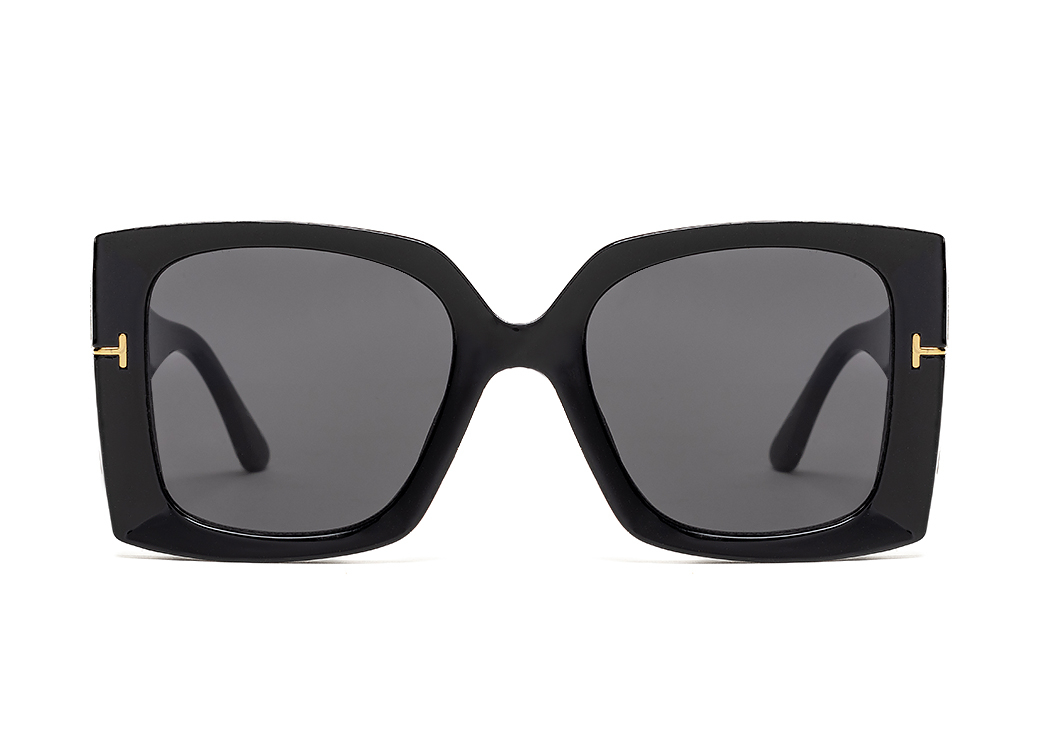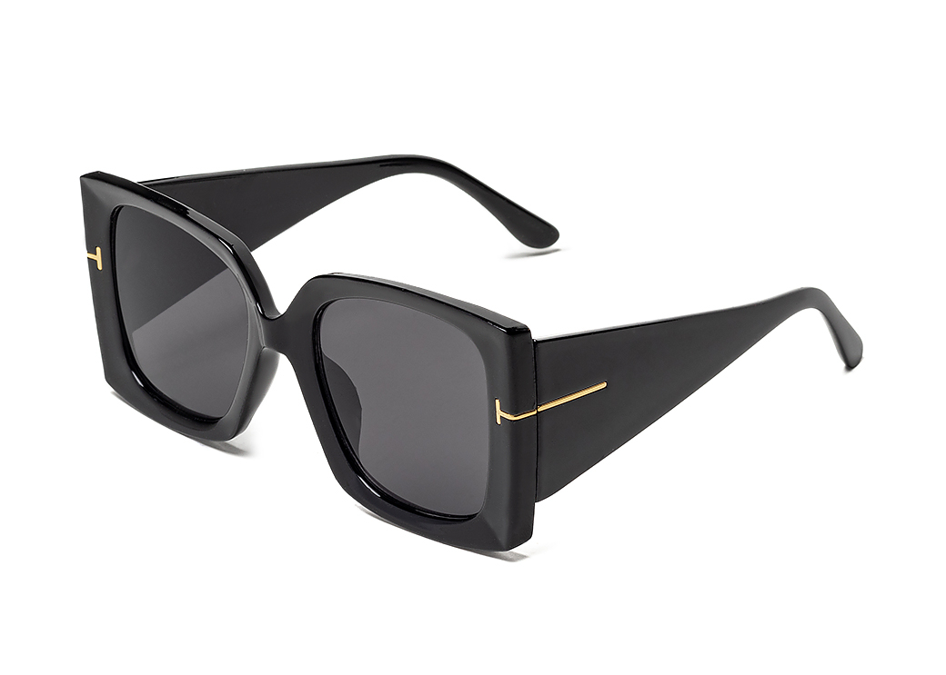 Duże okulary przeciwsłoneczne w kolorze czarnym z szerokim zausznikiem.