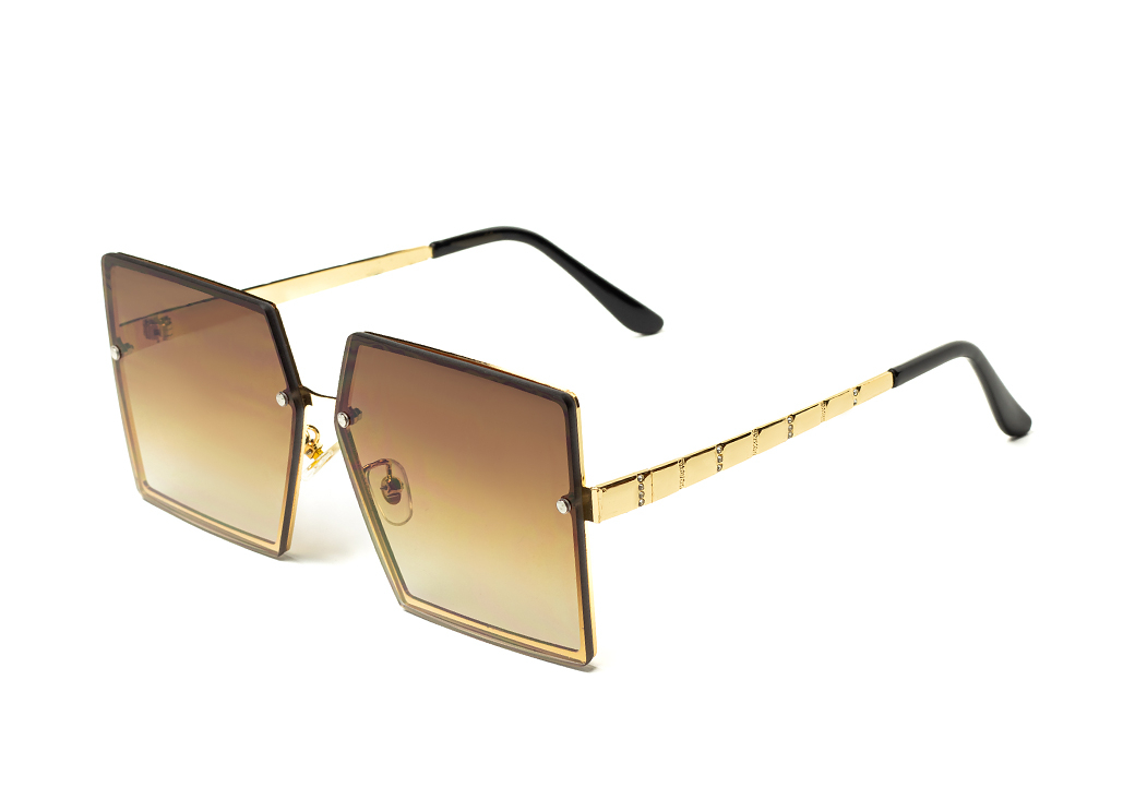 Duże okulary przeciwsłoneczne o geometrycznym kształcie w kolorze brązowym.Elegancki metalowy zausznik.