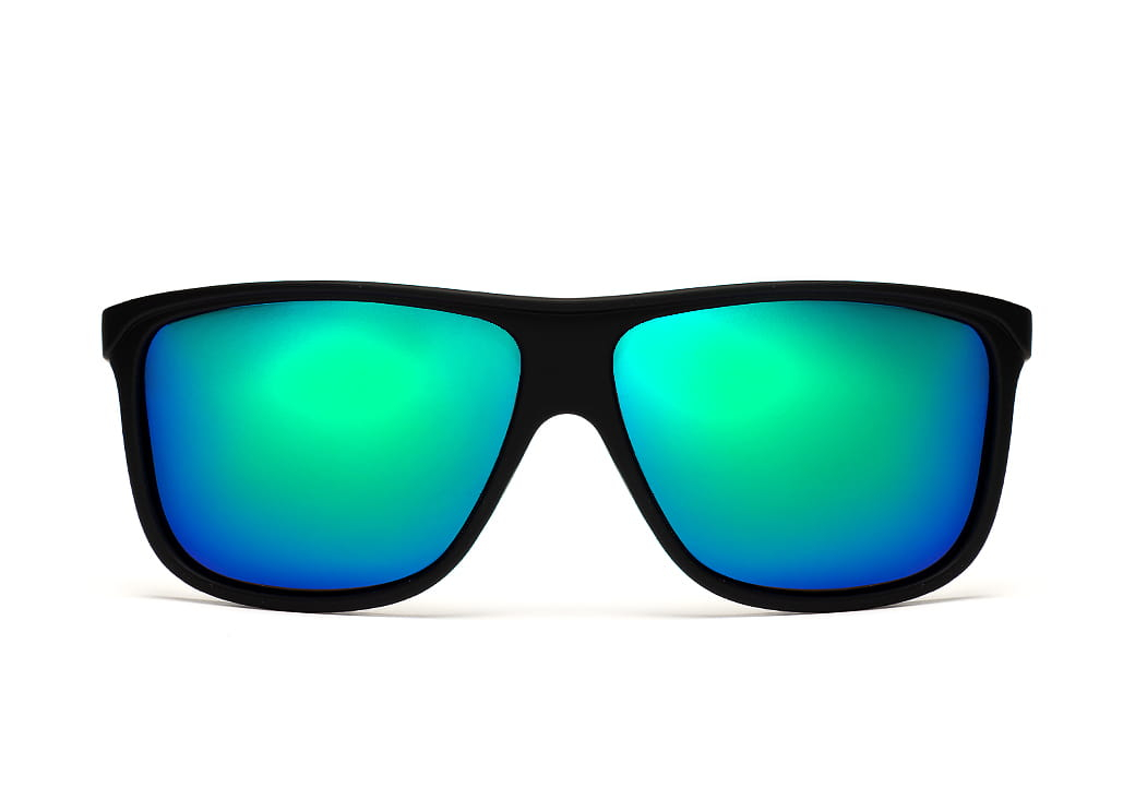 Okulary przeciwsłoneczne męskie z polaryzacją, soczewka w kolorze zielonym.Wykonane z wysokiej jakości matowego plastiku.Lekkie zdobienie na zauszniku.