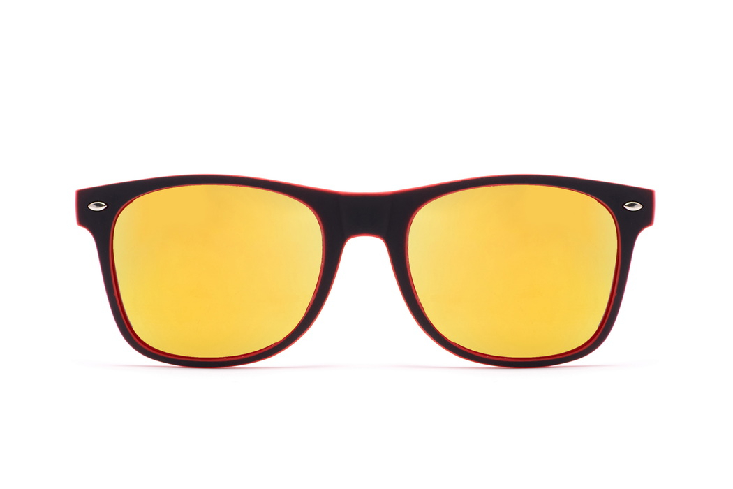 Ponadczasowe okulary przeciwsłoneczne męskie z polaryzacją,soczewka kolorze żółtym,oprawka wewnętrzna w kolorze czerwonym.Wykonane z wysokiej jakości matowego plastiku.