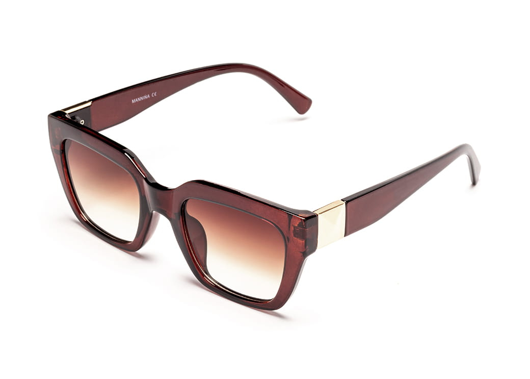 Duże okulary przeciwsłoneczne w kolorze brązowym.Eleganckie zdobienie na zauszniku.