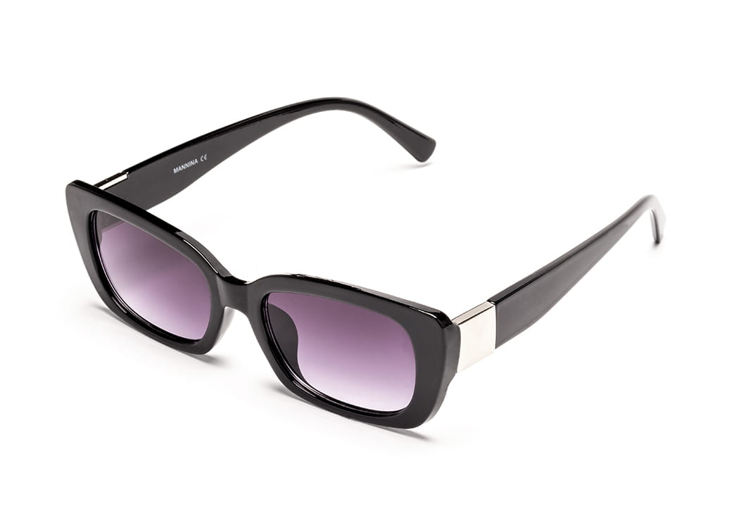 Klasyczne,małe okulary przeciwsłoneczne w kolorze czarnym.Eleganckie zdobienie na zauszniku.