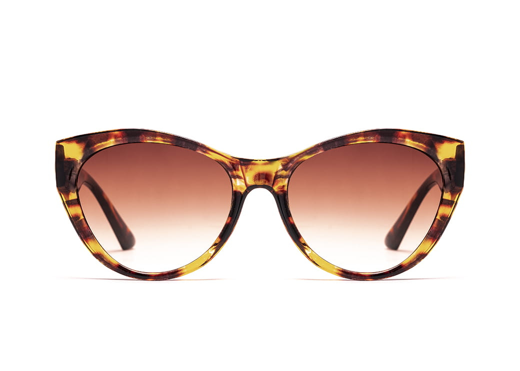 Okulary przeciwsłoneczne w kolorze panterka brąz o kształcie "kocie oko".Eleganckie zdobienie na zauszniku.