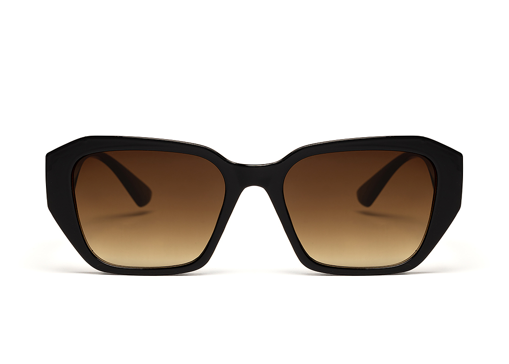 Okulary przeciwsłoneczne w kolorze brązowym o kształcie geometrycznym.Delikatny element ozdobny za zauszniku.