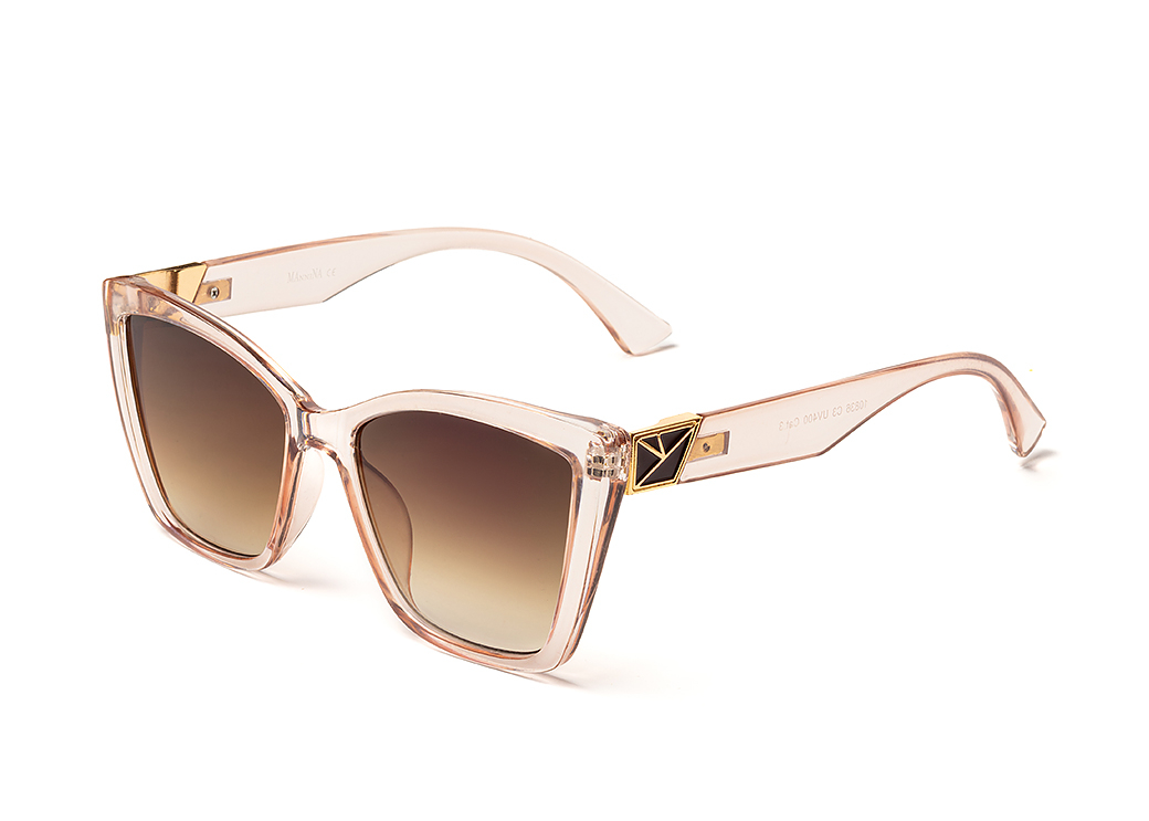Klasyczne okulary przeciwsłoneczne w kolorze beżowym.Lekkie metalowe zdobienie na zauszniku.