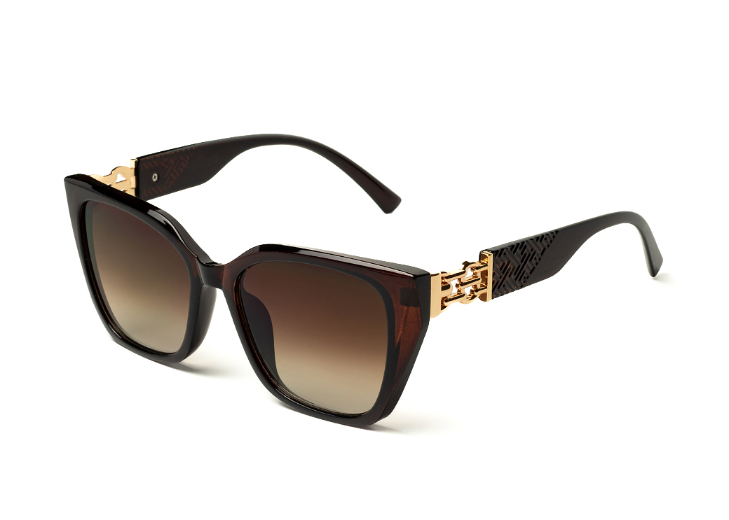 Klasyczne okulary przeciwsłoneczne w kolorze brązowym.Elegancki element dekoracyjny na zauszniku