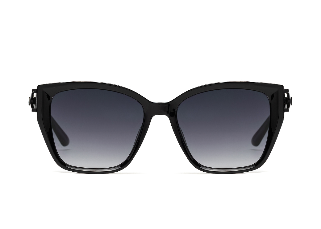 Klasyczne okulary przeciwsłoneczne w kolorze czarnym.Delikatny metalowy zausznik.