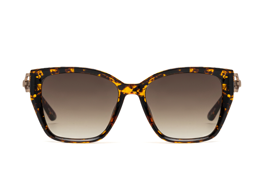 Klasyczne okulary przeciwsłoneczne w kolorze panterka brąz.Delikatny metalowy zausznik.